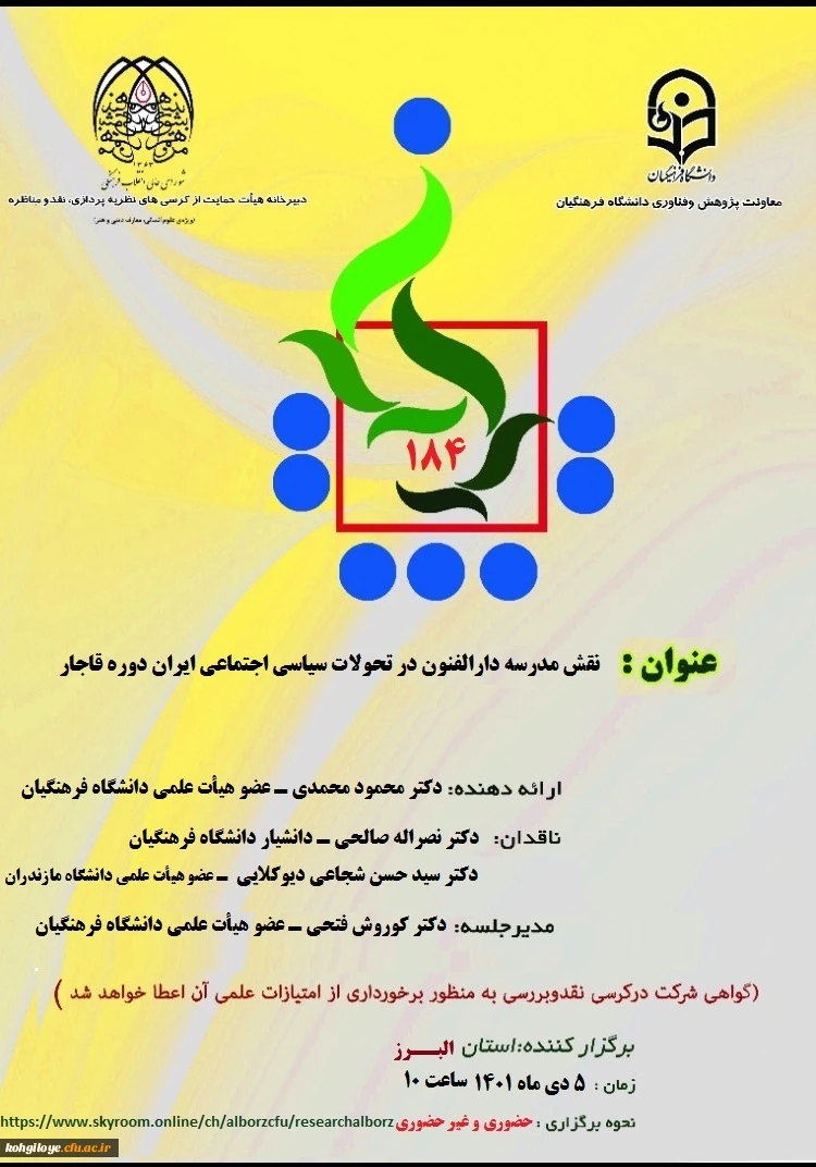 امتیاز دهید : نقش مدرسه دارالفنون در تحولات سیاسی اجتماعی ایران دوره قاجار 2 یکشنبه 4 دی 1401 ساعت 8:32