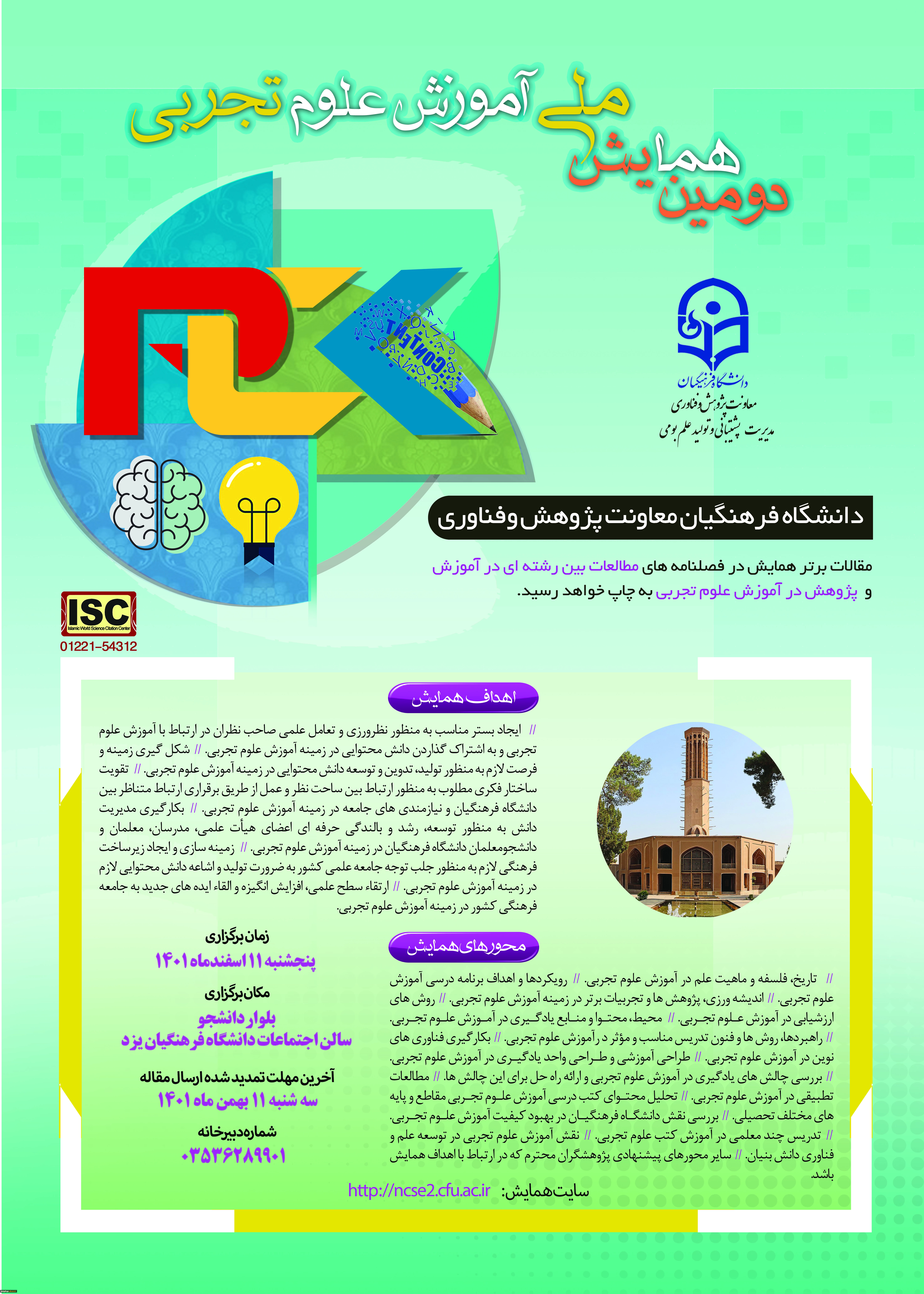 تمدید فرصت ارسال مقالات برای «دومین همایش ملی آموزش علوم تجربی» تا تاریخ سه شنبه 11 بهمن ماه 1401  2