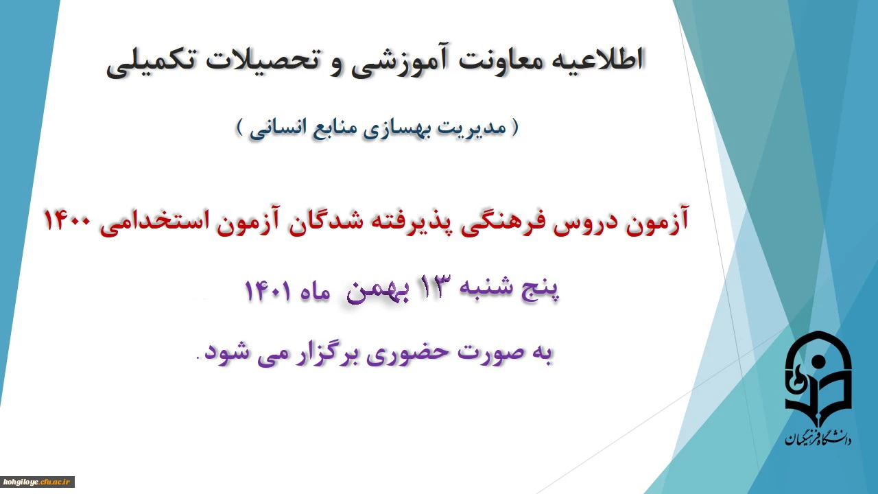 امتیاز دهید : برگزاری آزمون دروس فرهنگی پذیرفته شدگان آزمون استخدامی سال 1400 2 چهارشنبه 12 بهمن 1401 ساعت 11:31