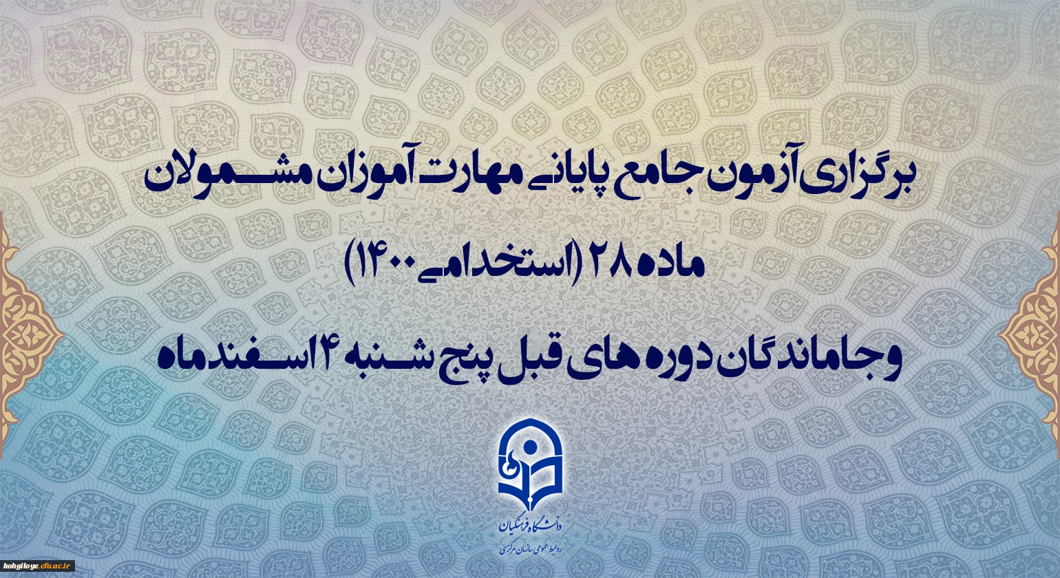 برگزاری آزمون اصلح(جامع) مهارت آموزان ماده28 در دانشگاه فرهنگیان استان کهگیلویه و بویراحمد 2