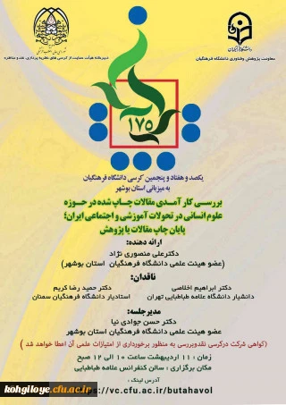 امتیاز دهید : یکصد و هفتاد و پنجمین کرسی علمی ترویجی دانشگاه فرهنگیان 2 دوشنبه 4 اردیبهشت 1402 ساعت 14:13