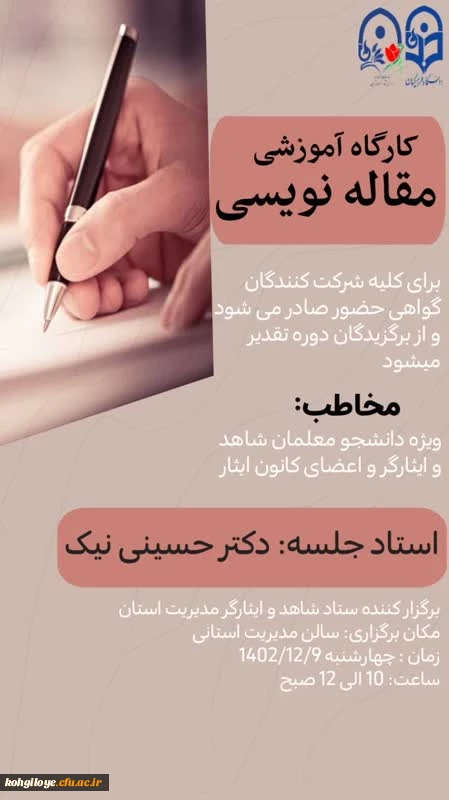 برگزاری کارگاه آموزشی مقاله نویسی (ویژه دانشجویان شاهد و ایثارگر و اعضای فعال کانون علمی_فرهنگی ایثار) 2