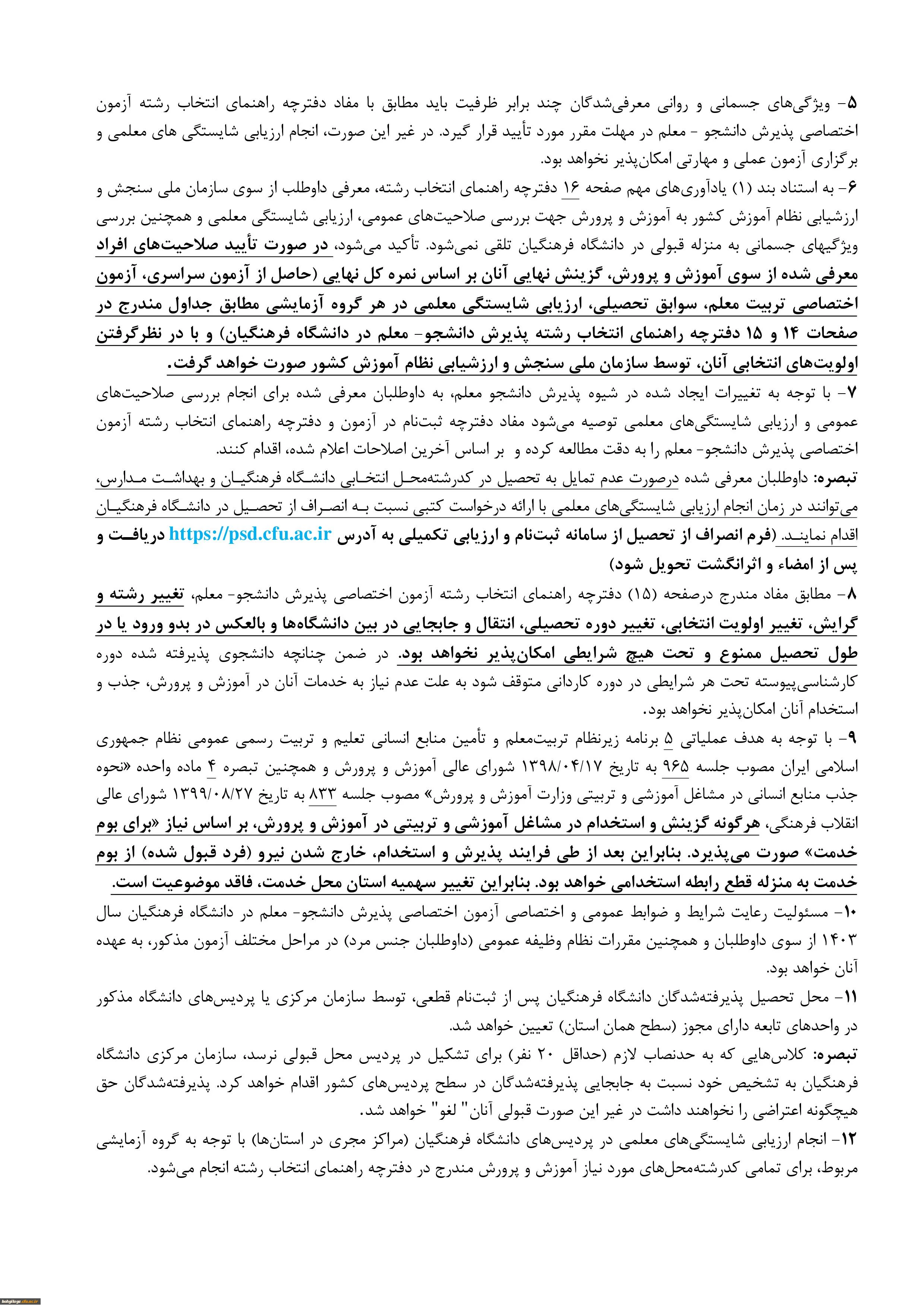 اطلاعیه اعلام اسامی چند برابر ظرفیت مربوط به پذیرشِ دانشجو-معلم دانشگاه فرهنگیان و نمرۀ کل آزمون متقاضیان آزمون سراسری ۱۴۰۳ (نوبت اول) 2