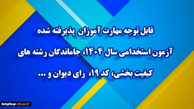 اطلاعیه شماره ۲ مرکز توسعه و بهسازی منابع انسانی دانشگاه فرهنگیان قابل توجه مهارت آموزان پذیرفته شده آزمون استخدامی سال ۱۴۰۴، جاماندگان رشته های کیفیت بخشی، کد ۱۹، رای دیوان و ... 2